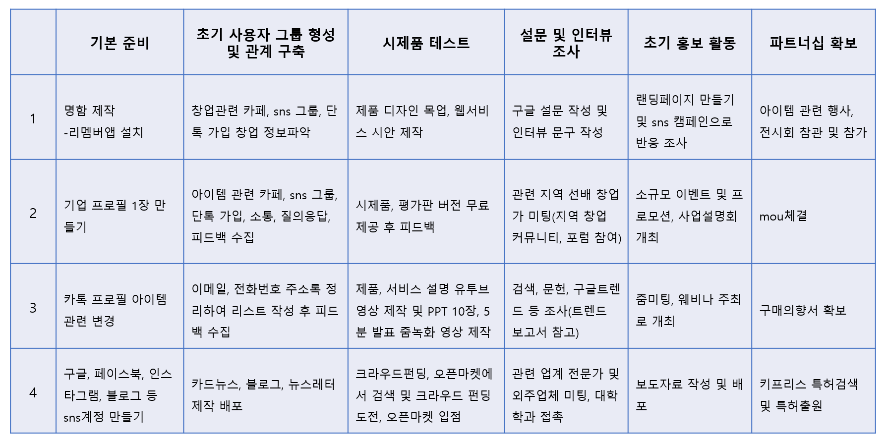 사업계획서 작성 이전 사전준비활동 체크리스트
