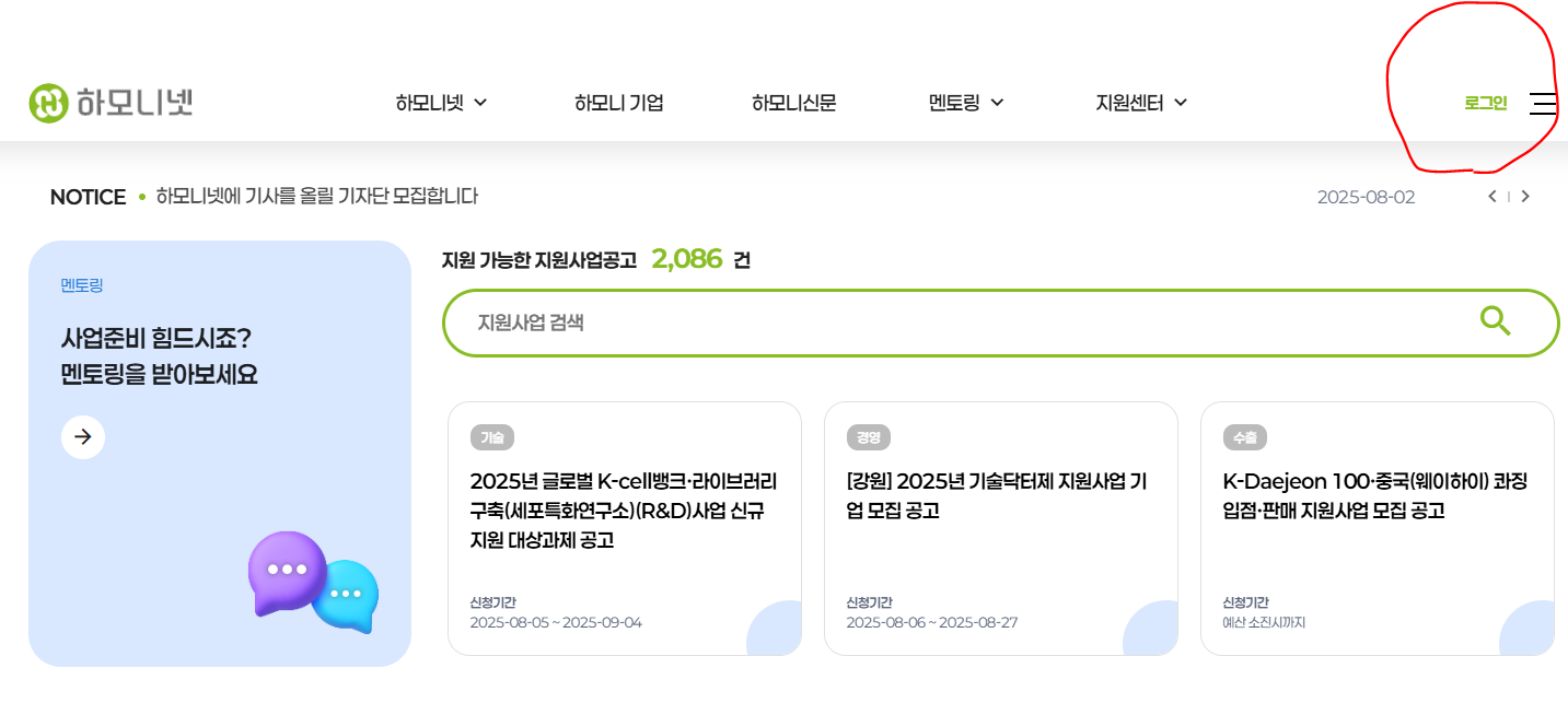 창업지원사업정보는 하모니넷 상단 메뉴 >> 지원센터 >> 지원사업공고를 참고하십시오.